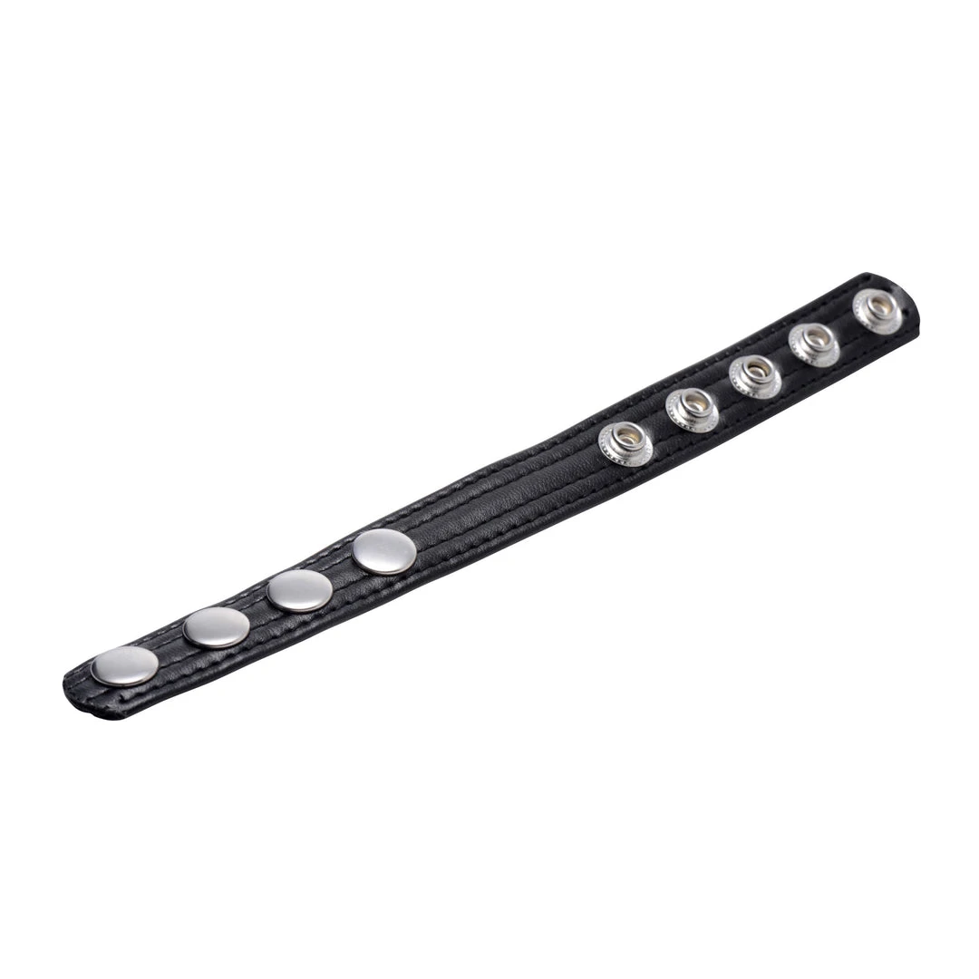 Maintain a harder, stronger, and more sensitive erection when you wrap this snap-on cock ring around your cock and balls! Restrict blood flow by tightening this comfortable and attractive strap around your package, creating a bulging hard-on that will last through your most tantalizing endeavors. Solo or with a partner, you will love the enhanced sensation of every stroke, thrust, suck, and fuck! When you are ready to ejaculate, just release the snap to quickly and effective remove the cock ring.