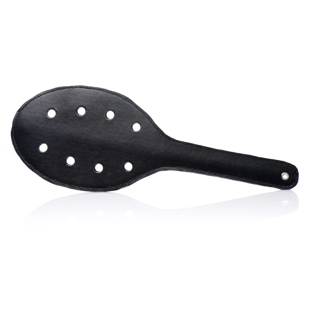 Smack the pretty ass of your submissive with this heavy duty paddle to give them the thud of pain that they crave! A firm core that runs from the handle up the middle provides you with maximum control and helps to land sturdy blows on your target. Eight holes in the paddle will create a strong sting when they hit their mark! A loophole at the end of the handle is perfect for wrapping around your wrist for additional security or for storage purposes.