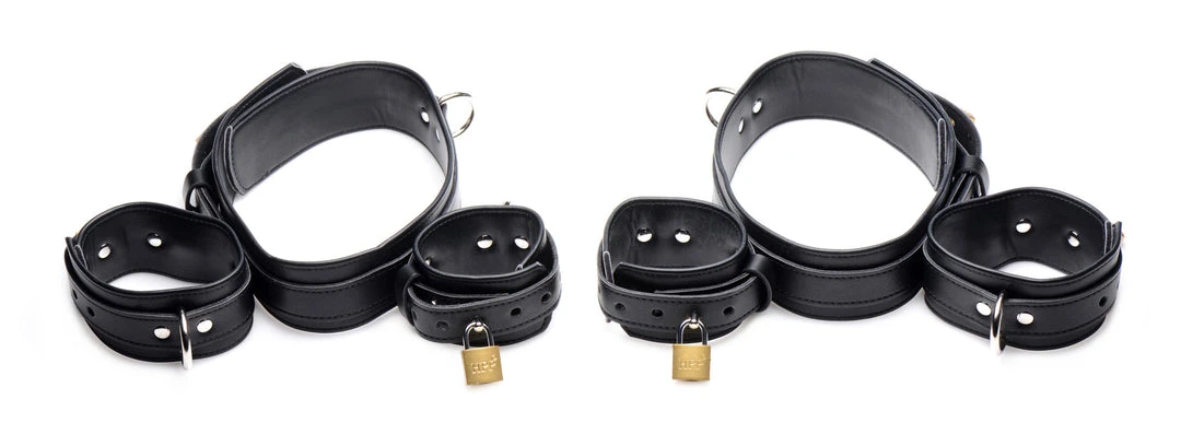 Lock up your partner with the durable locking buckles – this Frog Tie restraint set includes 6 locks and 12 keys for you to restrain your lover! Restrain their ankles to their thighs to force them to their knees, then bind their hands next to have them completely exposed and vulnerable! Combine with other dungeon toys like slappers, floggers, and blindfolds for the ultimate bondage experience.