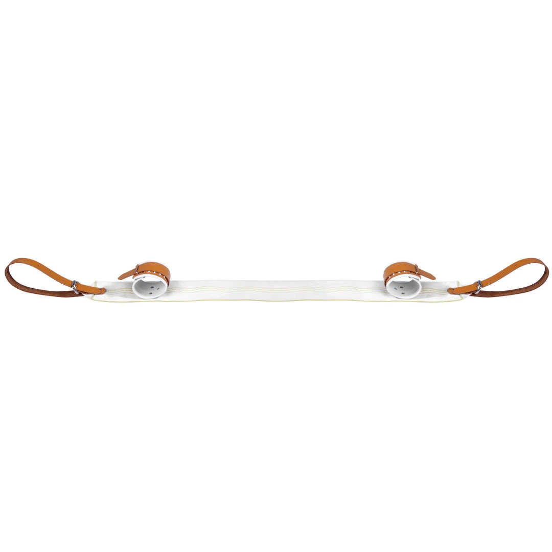 Measurements: Strap: Measures 96 inches in total length, canvas belt measures 48 inches in length, 4 inches in width, leather strap measures 24 inches in length and 1.25 inches in width, adjusts from 4 to 20 inches in circumference; Ankle cuffs: 14 inches in total length, adjust from 7 to 12 inches in circumference; Wrist cuffs: 12 inches in total length, adjust from 6 to 10 inches in circumference