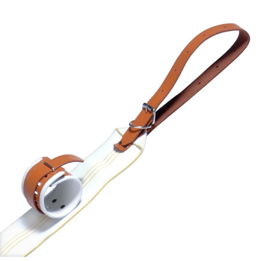 Measurements: Strap: Measures 96 inches in total length, canvas belt measures 48 inches in length, 4 inches in width, leather strap measures 24 inches in length and 1.25 inches in width, adjusts from 4 to 20 inches in circumference; Cuffs: 12 inches in total length, adjust from 6 to 10 inches in circumference