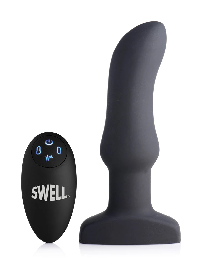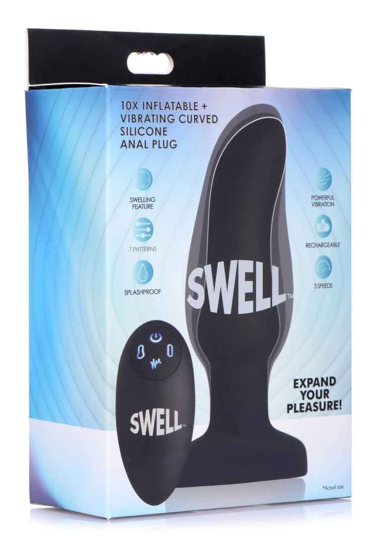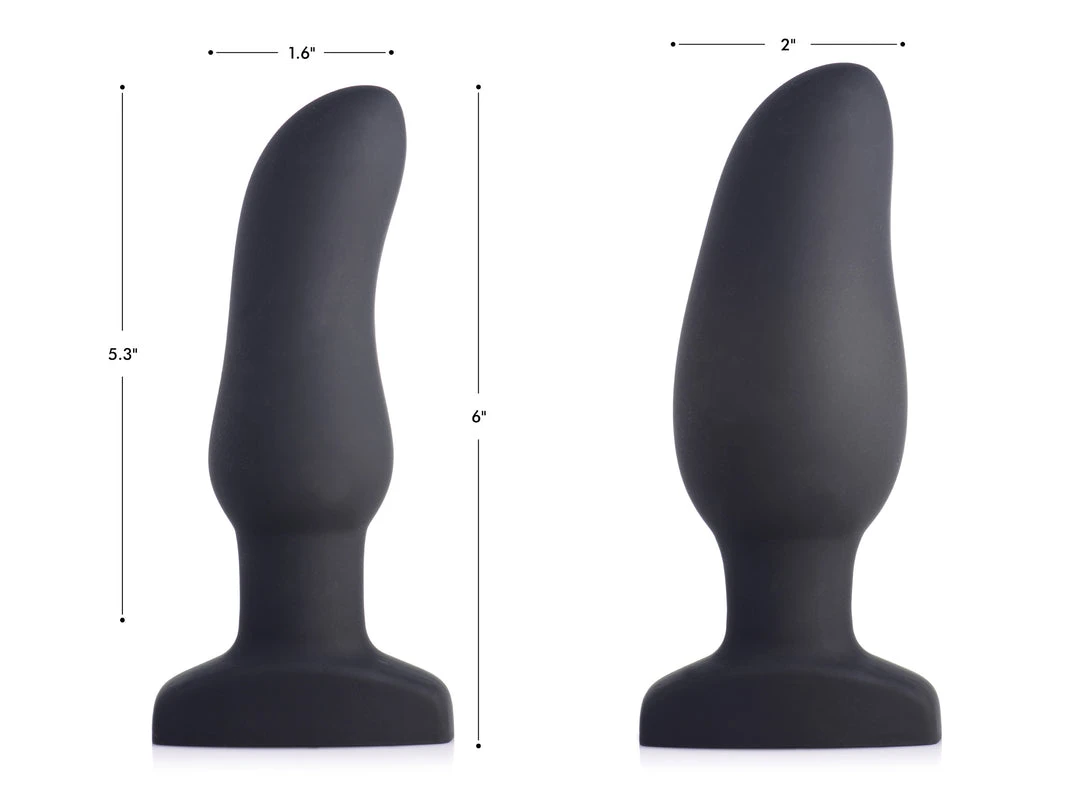 Crave the curve, beg for the bulge, and savor the swell! Expand your pleasure with this inflatable and vibrating anal toy unlike any other. This silky-smooth silicone plug will gently swell within you for an unbelievable sensation of fullness. Treat yourself or your partner to 7 modes of vibration, including 3 speeds and 4 patterns. The remote control does it all, sending buzzes into you booty, as well as allowing you to find the perfect inflation point. Just hold down the button on the left to begin the ballooning, or press it more carefully for a slow, gradual growth. The button on the right will instantly deflate it back to its original size for a comfortable removal.
