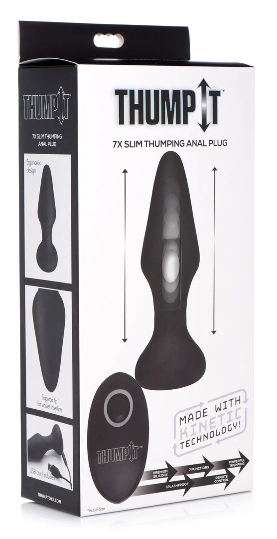 The tapered shape and slim body of this Thump It anal plug has been tried and tested to provide a fulfilling booty sensation with reduced discomfort! Featuring Thump-Its back and forth thumping Kinetic Technology to pulse and drum your backdoor with the perfect amount of force – amazing for solo play or using on a partner in combination with other naughty acts. Lube up and get your booty ready for a thumping good time!