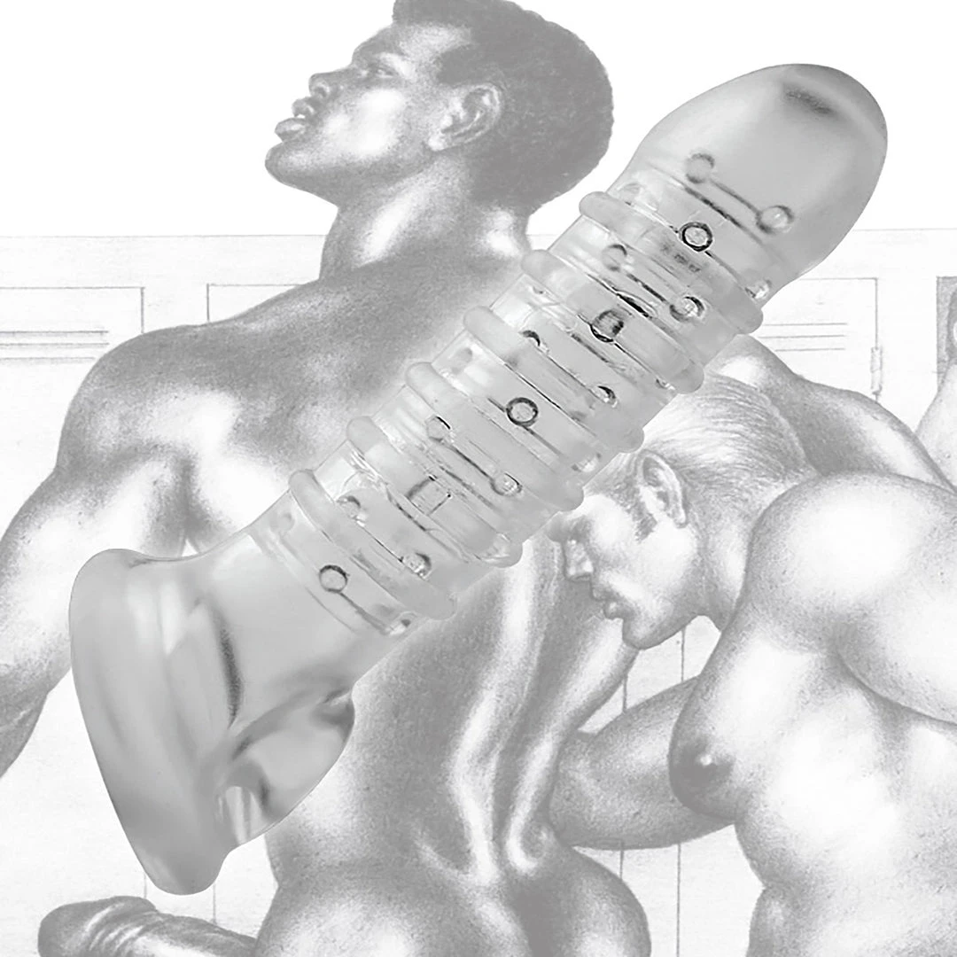Add length and girth to your erection with a textured enhancement sleeve! Penetrate your partner with a bigger dick when you slide into the stretchy extender, nubbed and ribbed internally for your intense pleasure. As you thrust into your lover, you will feel the delightful friction inside, while the external ribbing massages their hole. The ball strap feature includes a stretchy opening for your scrotum to fit through, keeping this phthalate-free sleeve in place and adding extra sensation. Clean with mild soap and warm water. Safe for use with both water-based and silicone lubes.