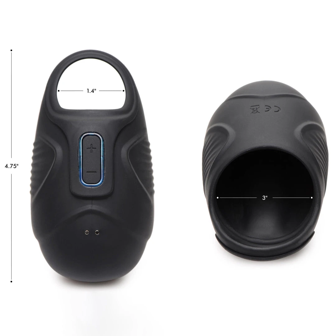 Measurements: Overall length: 4.75 inches, Cock ring diameter (unstretched): 1.4 inches, Ball chamber depth: 3 inches