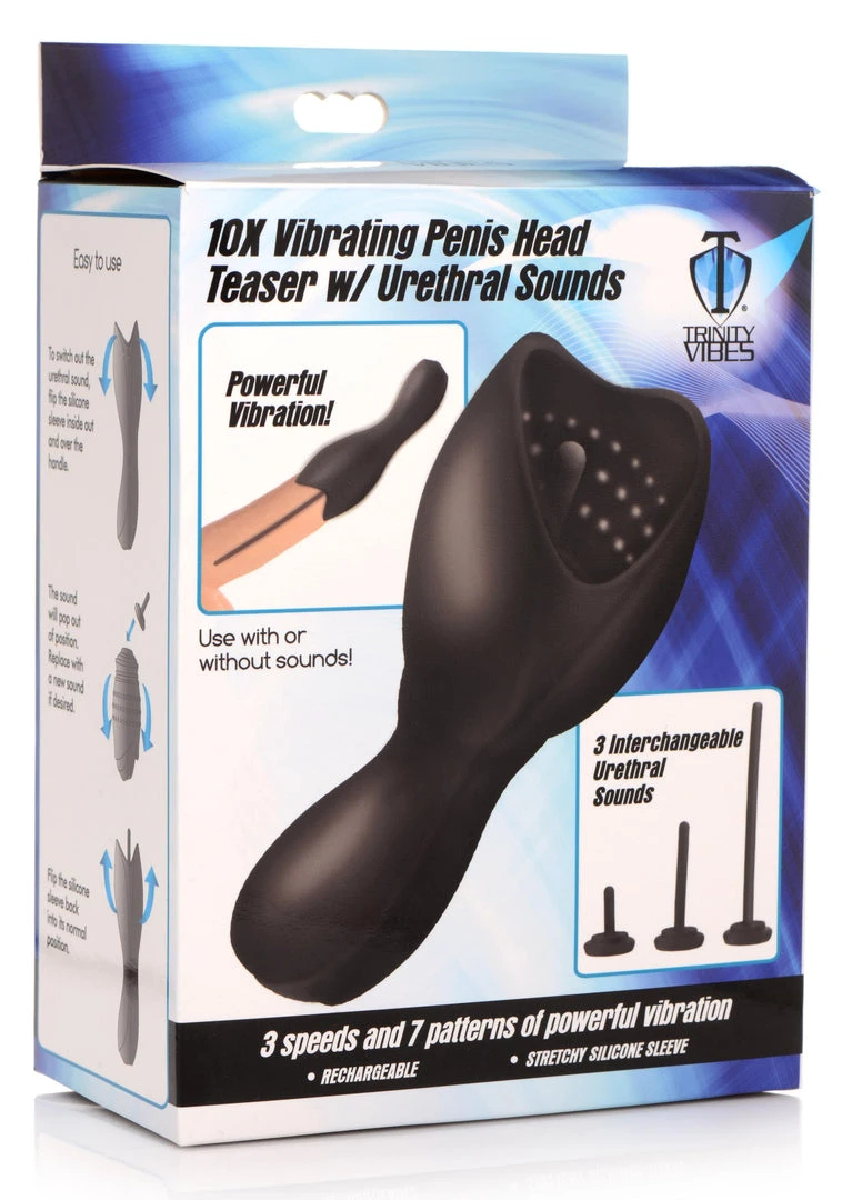 Explore sensational ecstasy vibrating through your shaft like you have never felt before! This is more than a penis head vibrator; it sends powerful vibrations down a silicone, urethral sound! Experience 3 levels of intensity and 7 different pattern variations that buzz the head of your cock and send undulating pulses through your shaft. Choose between small, medium or long silicone sounds so you can play with the depth of your choosing.