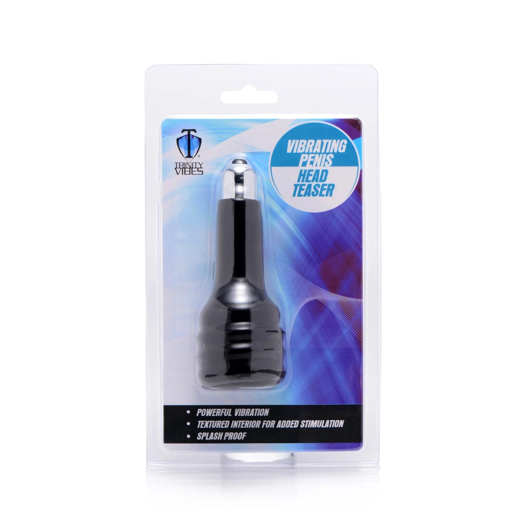 Tease the tip of your cock with a textured and vibrating stimulator! This masturbation toy includes a removable bullet that provides powerful vibration, as well as a head teaser that is internally lined with exciting nubs. The stretchy material allows it to fit over the head of just about any sized shaft. Jack off while you wear it or let your partner play with you!