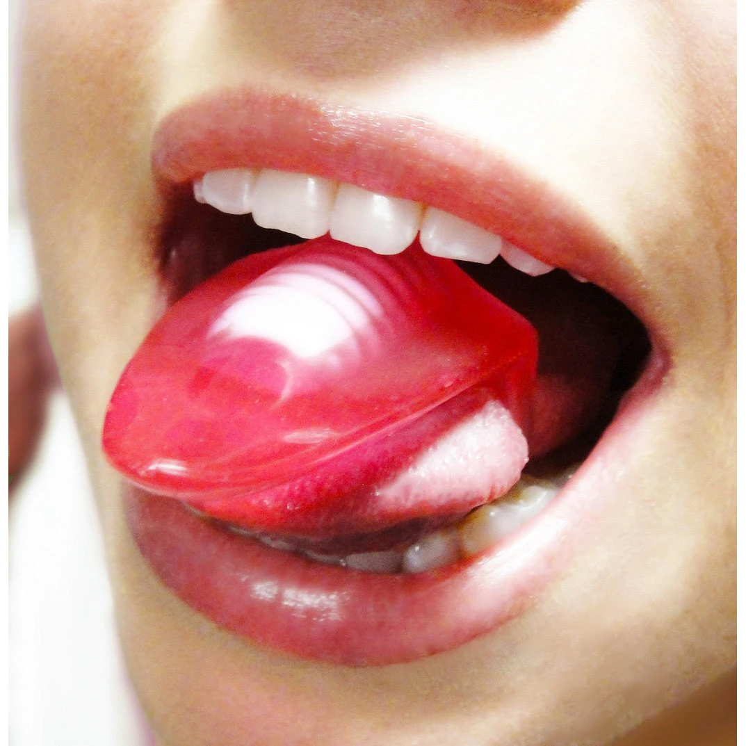 The Lick It vibrator is designed to enhance the pleasure you can give to your partner with your tongue. Simply place the stretchy strap over your tongue and flip the switch on the mini vibe. Now you tease your lover with arousing vibrations while you explore them with your tongue! This travel-size toy can also be used on a fingertip for even more erotic possibilities. The strap has ridges to help hold this soft silicone tongue in place while you are discovering new pleasure zones, and with no cords to tie you down, you can take it anywhere!