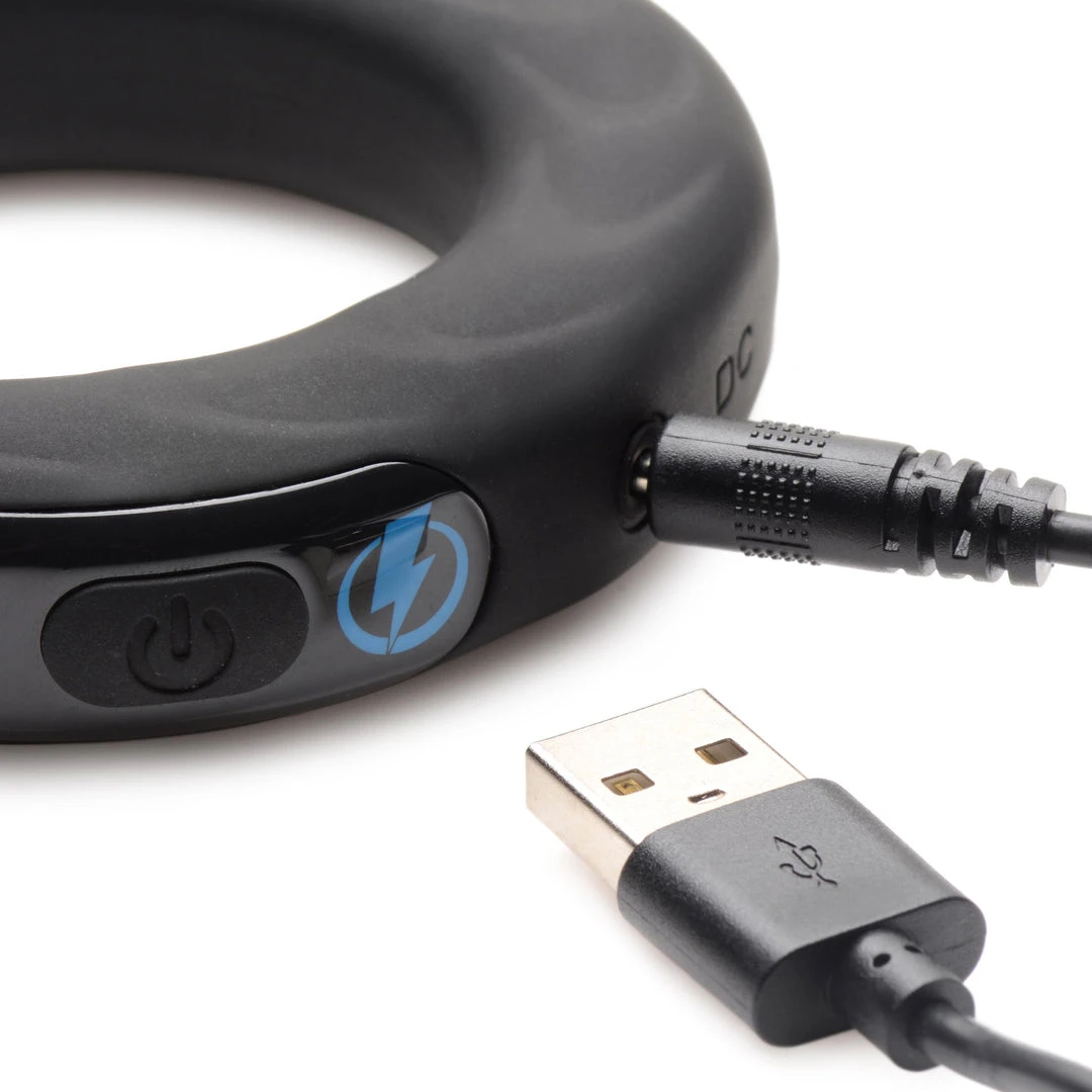 Give your cock a good shock with this Vibrating E-Stim Cock Ring! This meaty silicone ring is designed to not only enhance your erection, but to give you and your lover a tantalizing shock with each thrust. Indulge in the world of electro play! This E-Stim Pro Cock Ring is designed to shock and electrify without the need for a power box, wires or electrodes so you can simply slip it on and feel its shocking bliss with ease!